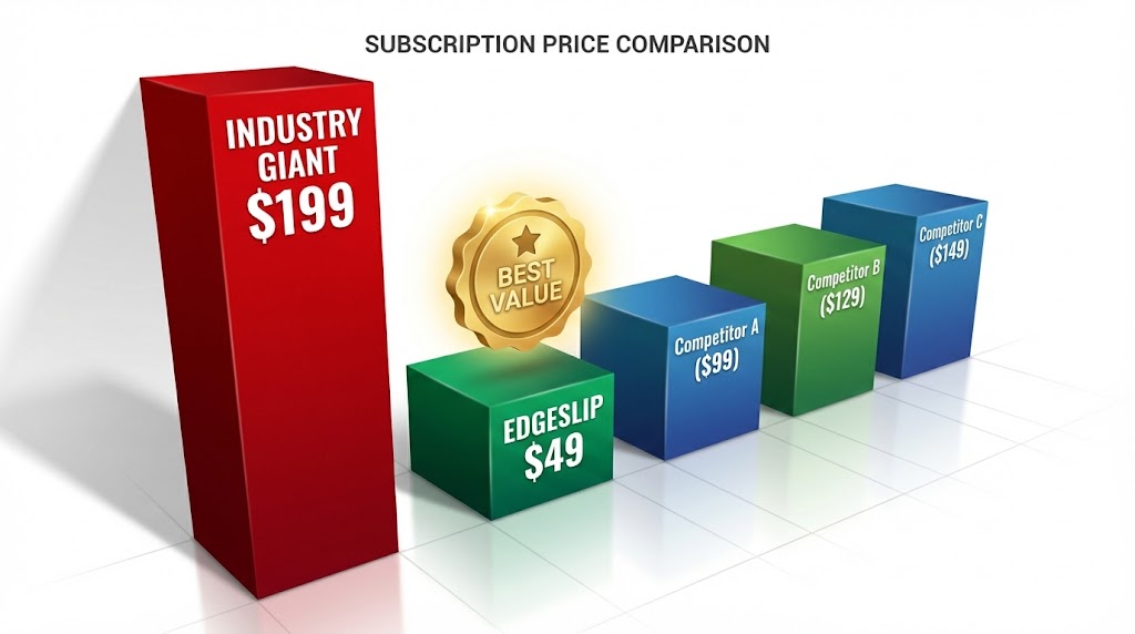 EdgeSlip offers the same mathematical rigor—scanning the same sharp books and finding the same discrepancies—at a price that allows you to be profitable on Day 1.